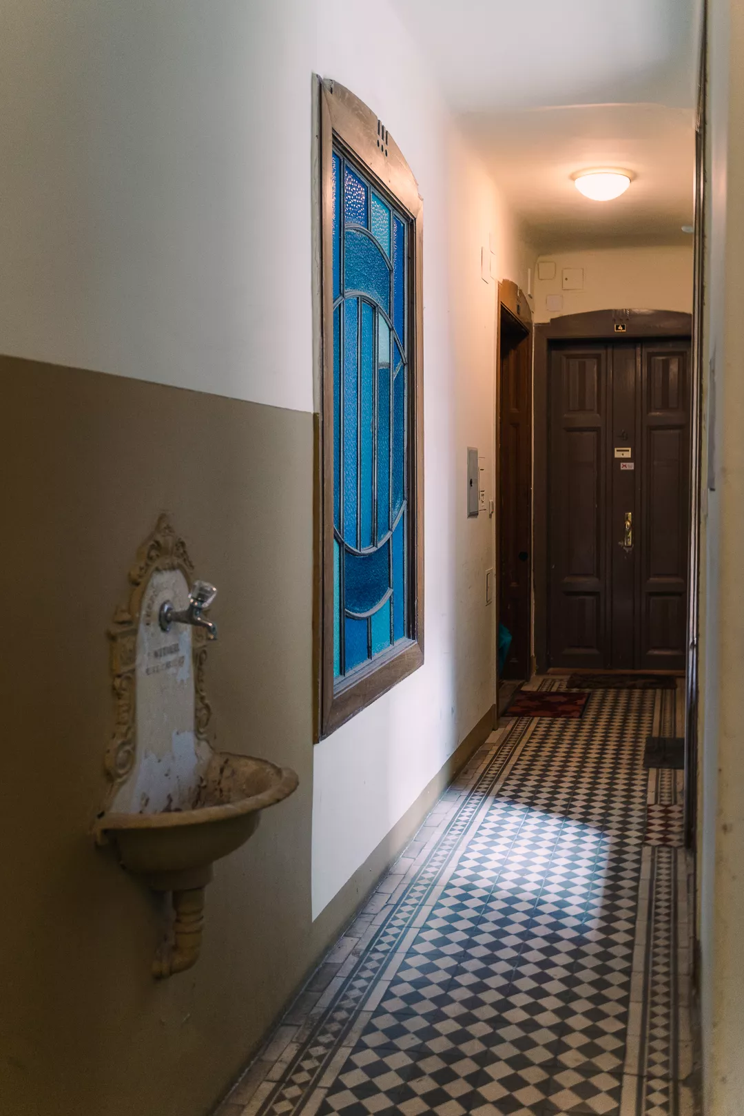 The Bassena is a pretty wall-mounted water fountain located in the common area of an Altbau that once doubled as a meeting spot for the residents of the building. During a so-called “ Bassena Tratsch”, there were gossip and rumours exchanged and political issues discussed. This often resulted in fights and even lawsuits as neighbors didn’t always see eye to eye.